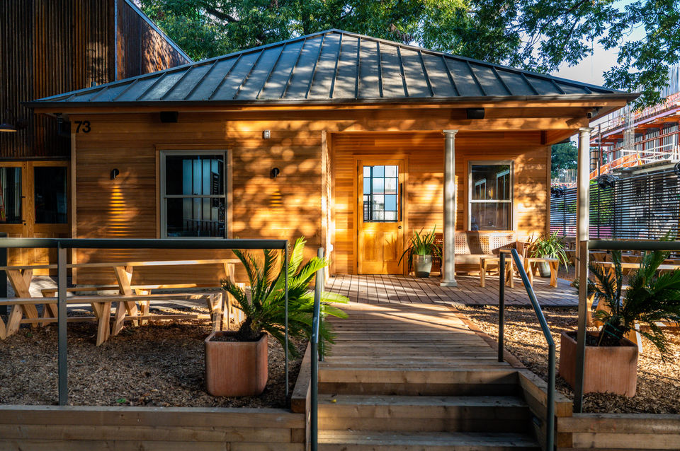 Located in Austin’s historic Rainey Street District, the Stay Put Brewery is a complete restoration of the house that originally occupied this lot. Inspired aesthetically by Texas’s dance halls, the Stay Put bring brings a warm, intimate experience to craft brewing. With both indoor and outdoor bars, guests can utilize custom built seating inside, or a refreshing patio experience under the shady oak trees outside.